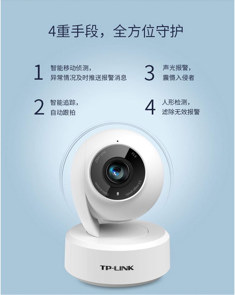 普聯(TP-LINK)インテリジェント監視カメラ雲台版ハイビジョンナイトビジョン360度の無線家庭用カメラ携帯電話遠隔監視カメラIPC 43 AN-4墨黒公式標準装備128 G