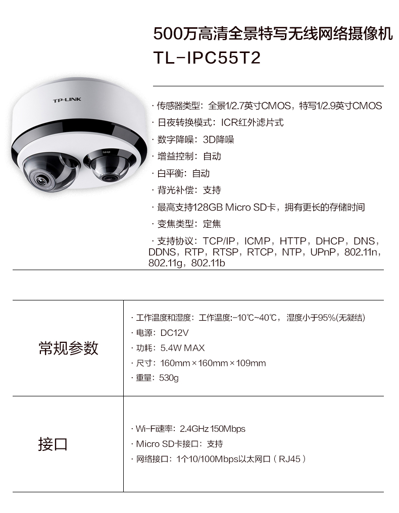 TP-LIKダブルレンズハイビジョン無線監視カメラインテリジェントフォローwifi携帯電話長距離家庭用室内店舗旋回全景回転店防犯モニタTL-PC 55 T 2【500万パノラマ+200万クローズアップ】128 GB