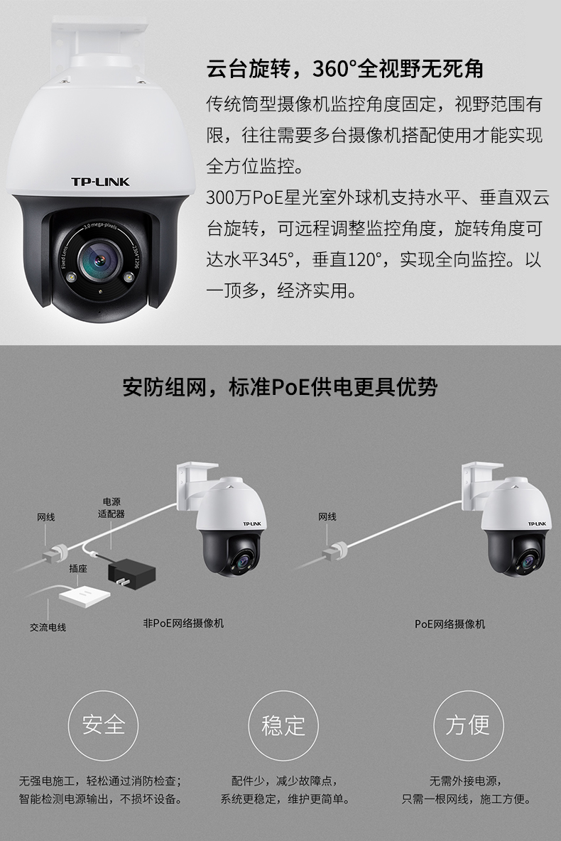 普聯(TP-LINK)300万高精細ケーブル監視カメラpoe給電星星夜視雲台回転家庭用室内外携帯電話長300万POE星ライト夜間テレビカメラIPC 633 P-D 6 64 G