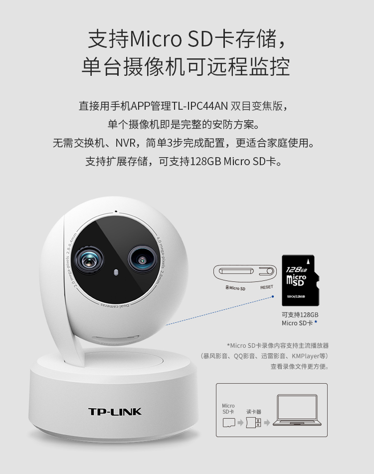 | 商品名称 | 普聯TP-LINK 400万両眼広角ズームカメラTL-PC44 AN両眼ズーム版+64 Gビデオ監視専用カード |