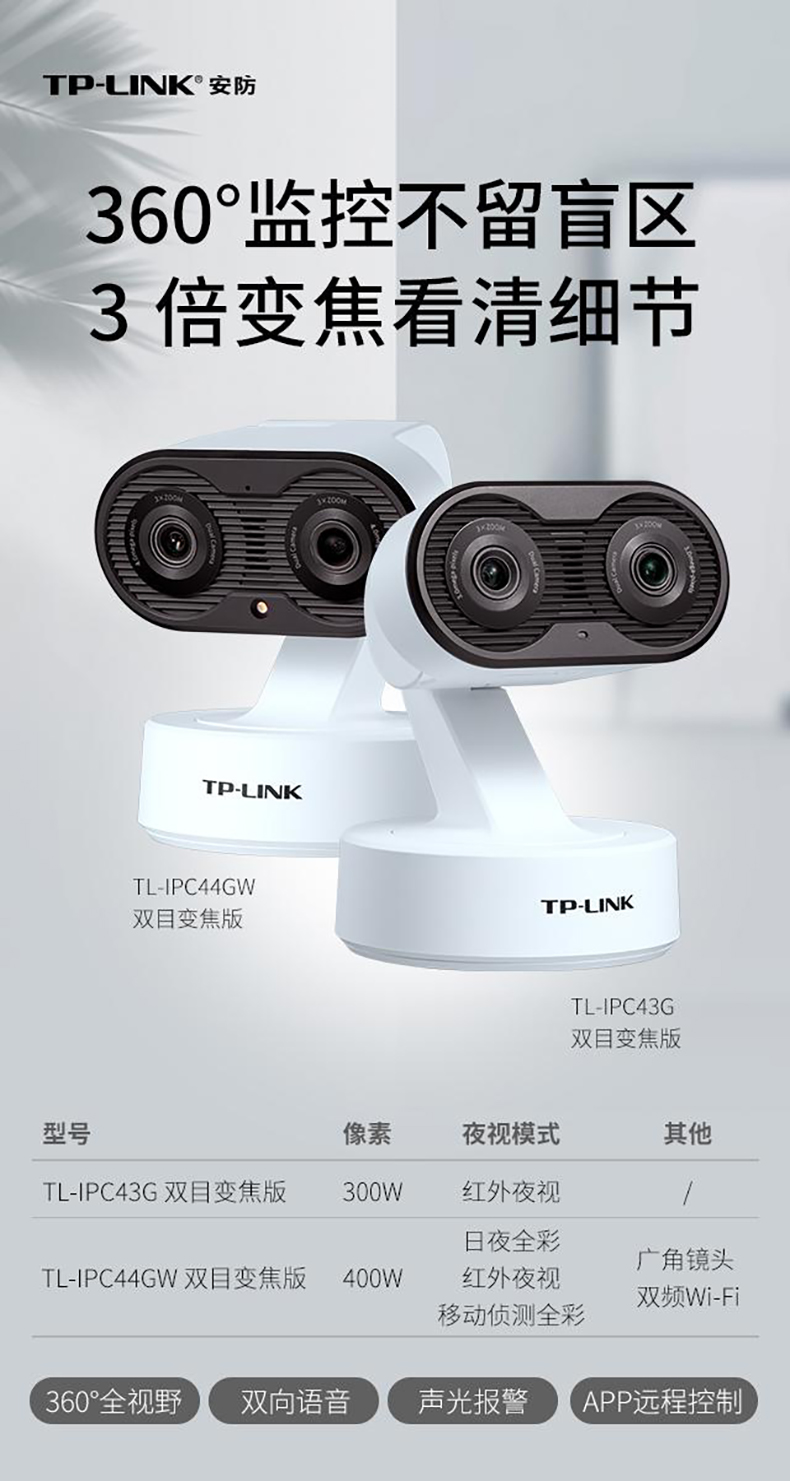 普联tplink监视防犯カメラ家庭用ワイヤレンター内室モニタワール家庭で対话できるwifi留守番スムでナイトモニター调査5 gプレゼンテーション300万赤外線/シングル/双眼ズム4 mm无